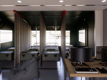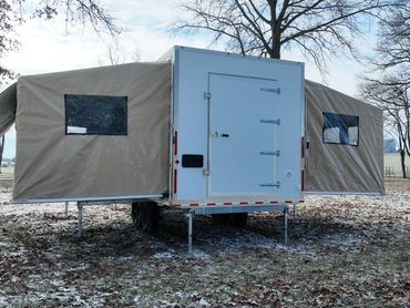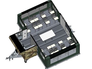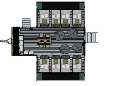 3 people can transform the structure from a road worthy trailer to a 430 sq ft functional space in under 15 minutes.